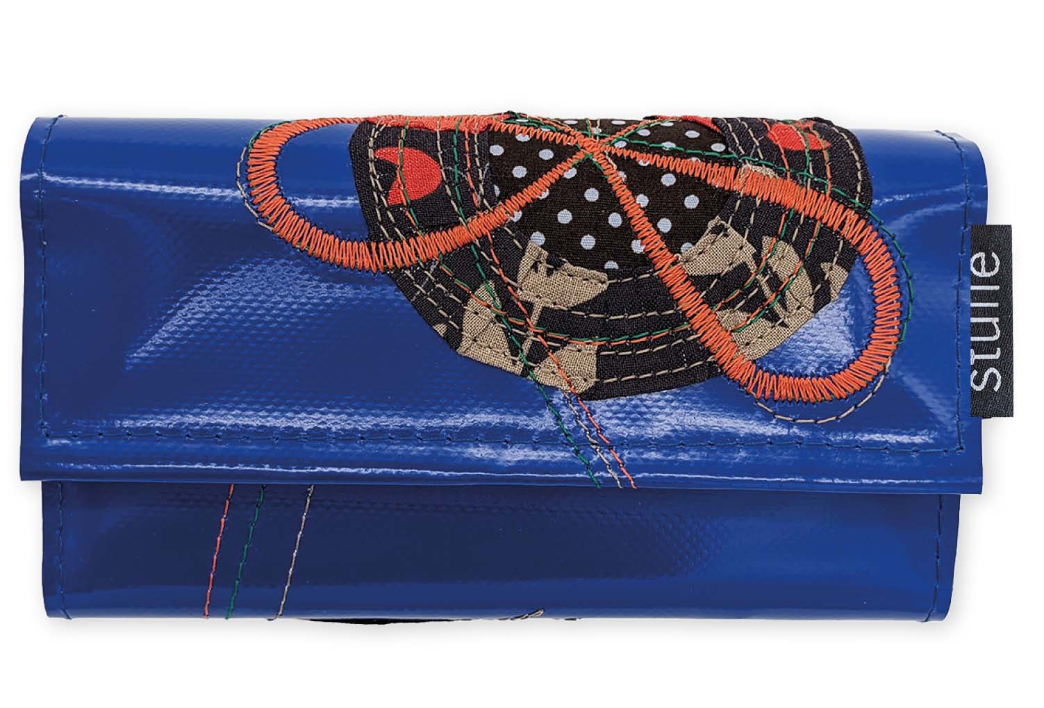 Hochwertige Materialien definieren diese Designer-Geldbörse: Wasserfestes und griffbeständiges Cordura kombiniert mit veganer Plane. Das ansprechende Design ist mit exklusiven Baumwollstoffen bestickt und sorgt für eine bunte Note.