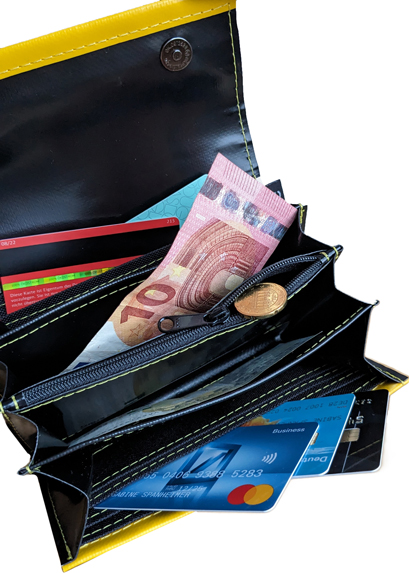 Entdecke unser einzigartig gestaltetes Portemonnaie – die ideale Geldbörse für umweltbewusste Trendsetter. Unser veganer Geldbeutel, ein wahres Unikat mit exklusivem RFID-Schutz, wird zu 100 % in Berlin von Hand gefertigt.
