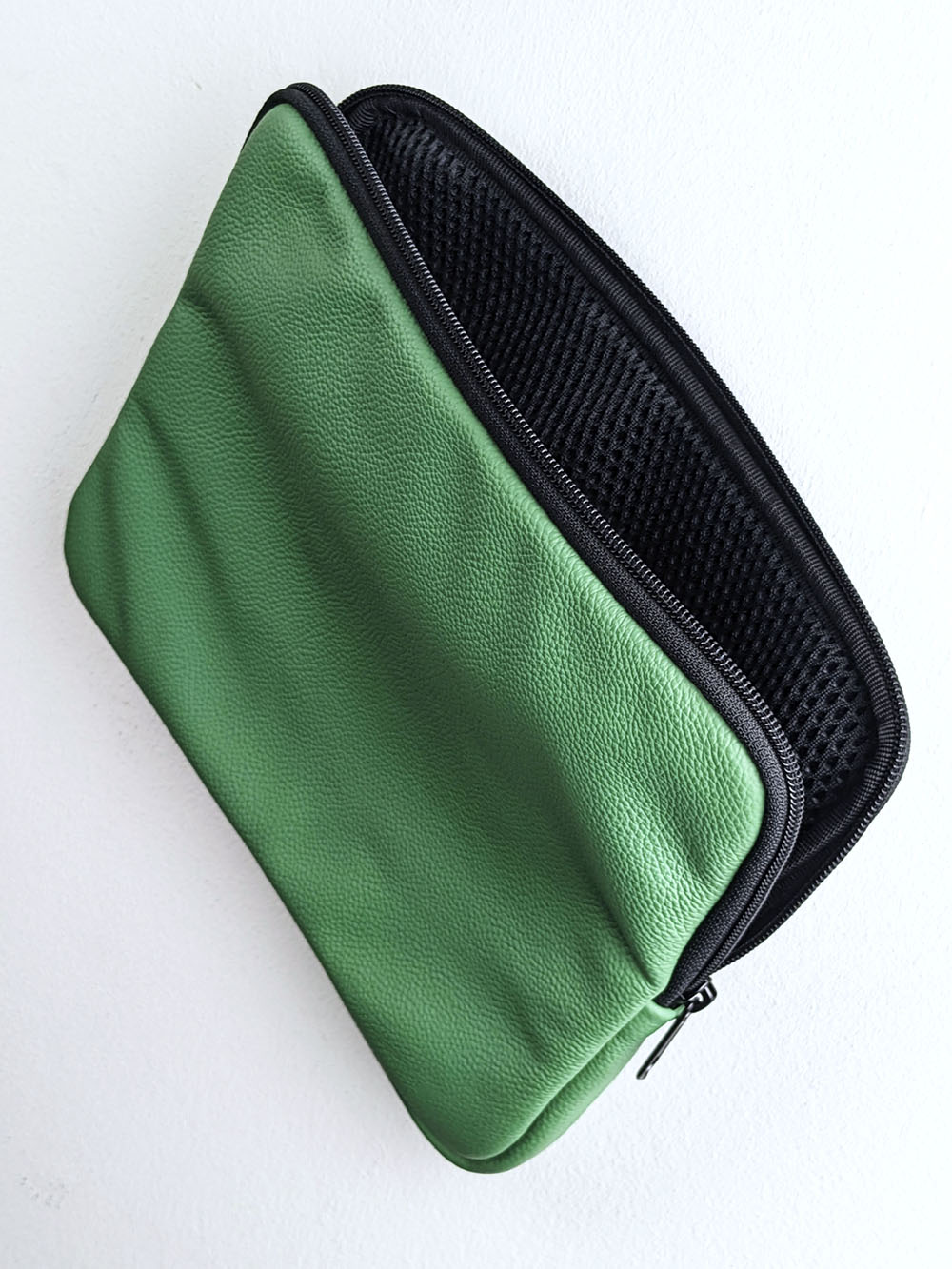 Unser Sleeve für iPad und andere Utensilien ist ein Unikat und wird zu 100 % in Handarbeit in Berlin gefertigt. Hergestellt aus echtem Bioleder aus Italien, es ist innen mit Schaumstoff gepolstert und verfügt über ein Synthetik-Netz.