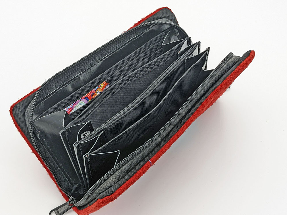 • Vier geräumige Innenfächer für Banknoten, Bons, Personalausweis, Führerschein