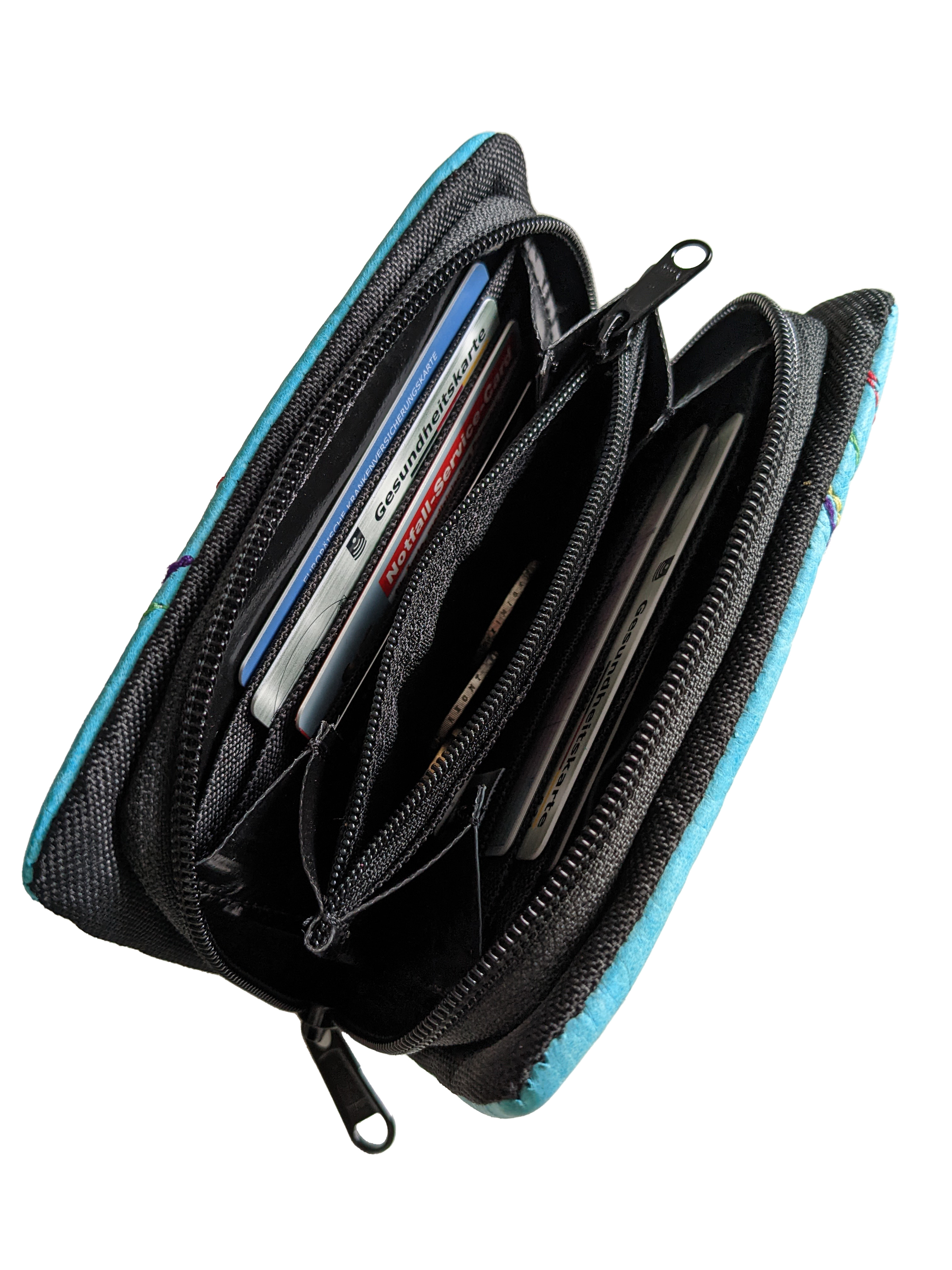 • Vier Innenfächer plus zwei große Fächer für weitere Karten, direkt hinter den Steckfächern